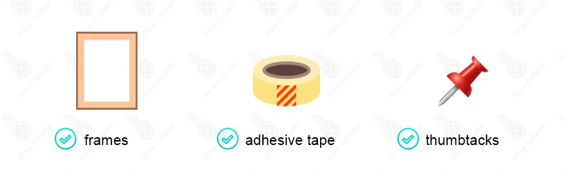 Você pode emoldurar, alguns clientes usam tachinhas ou fita adesiva, que ficam ótimas.